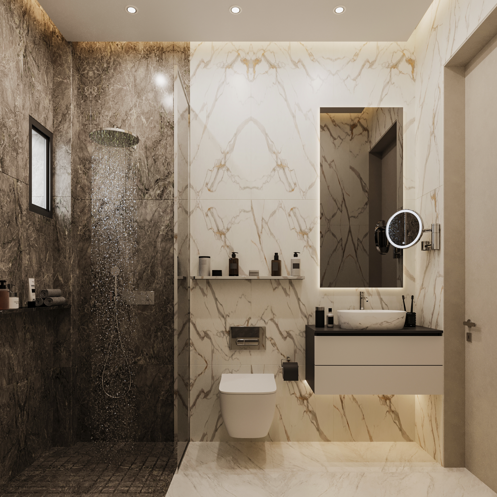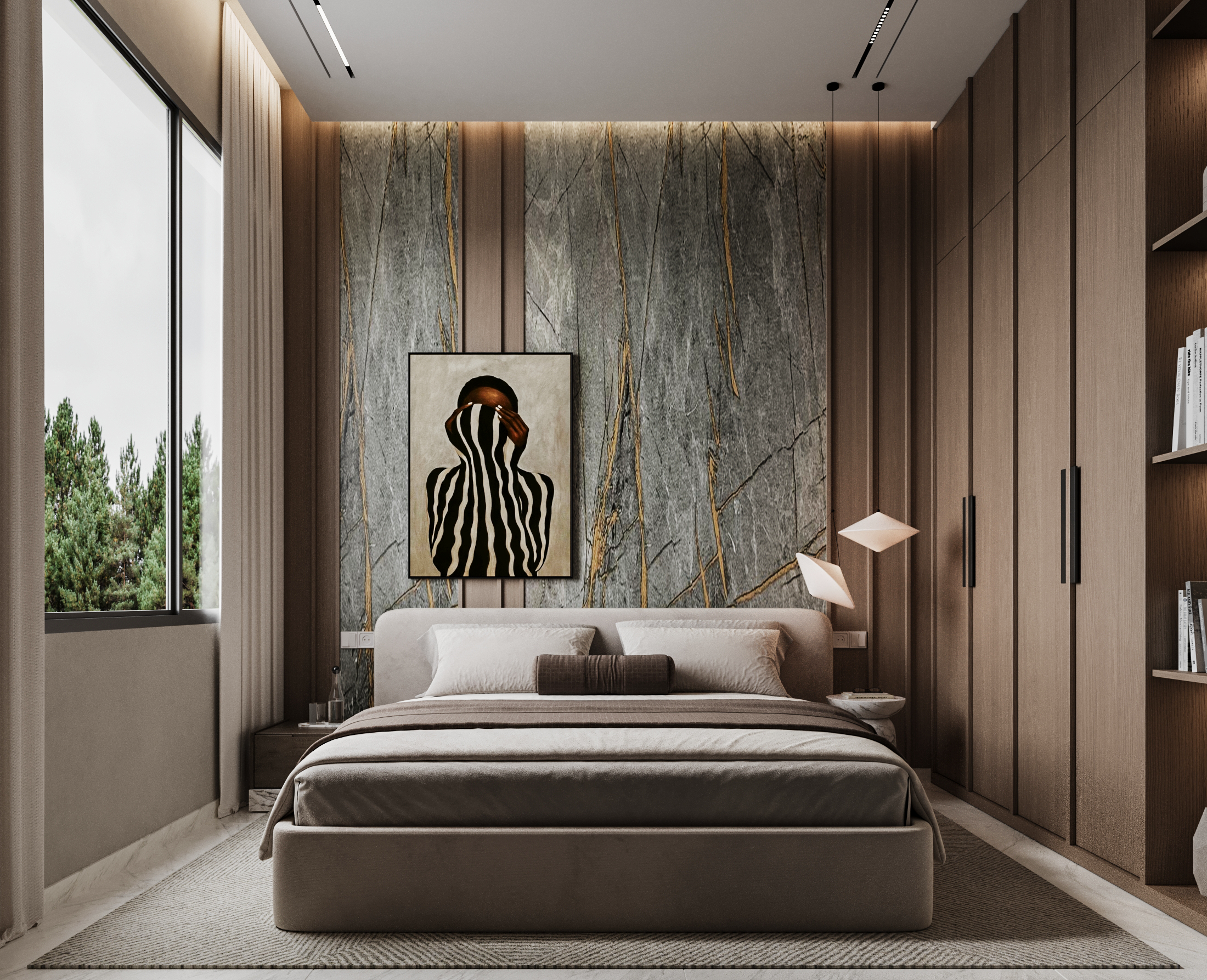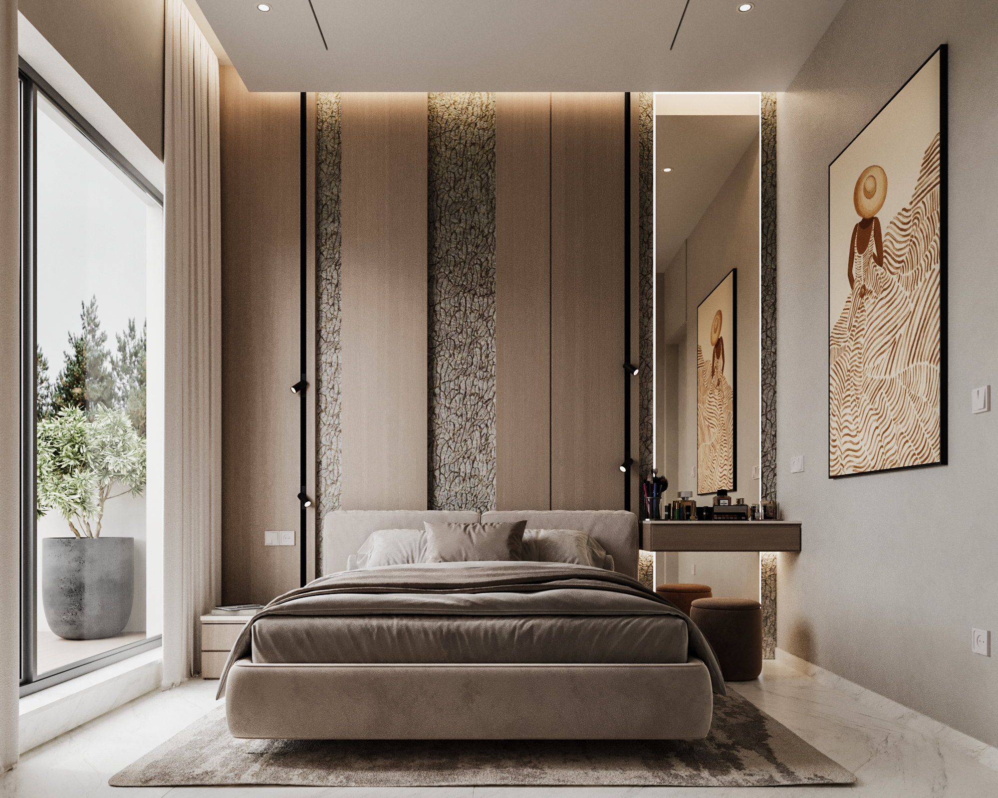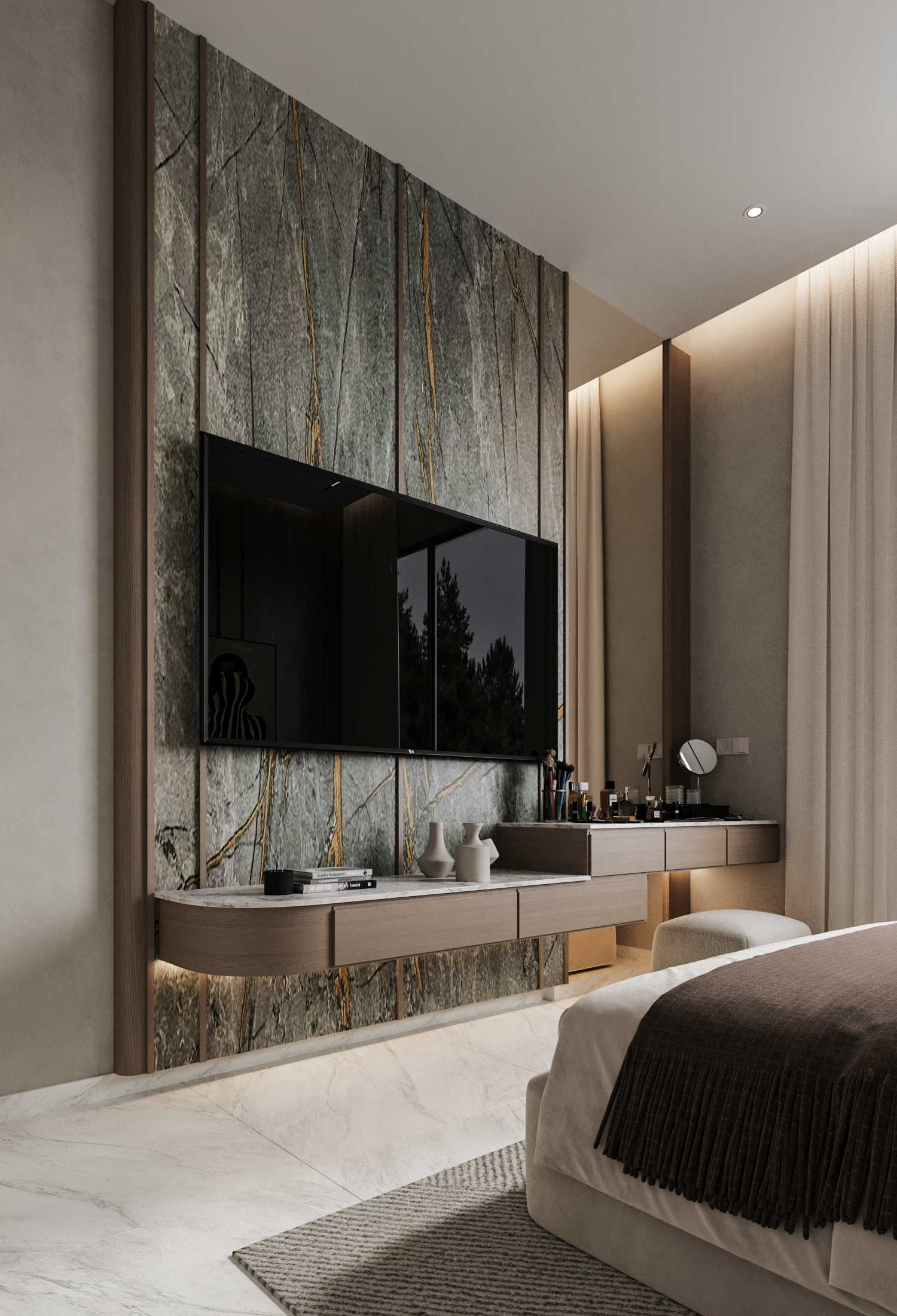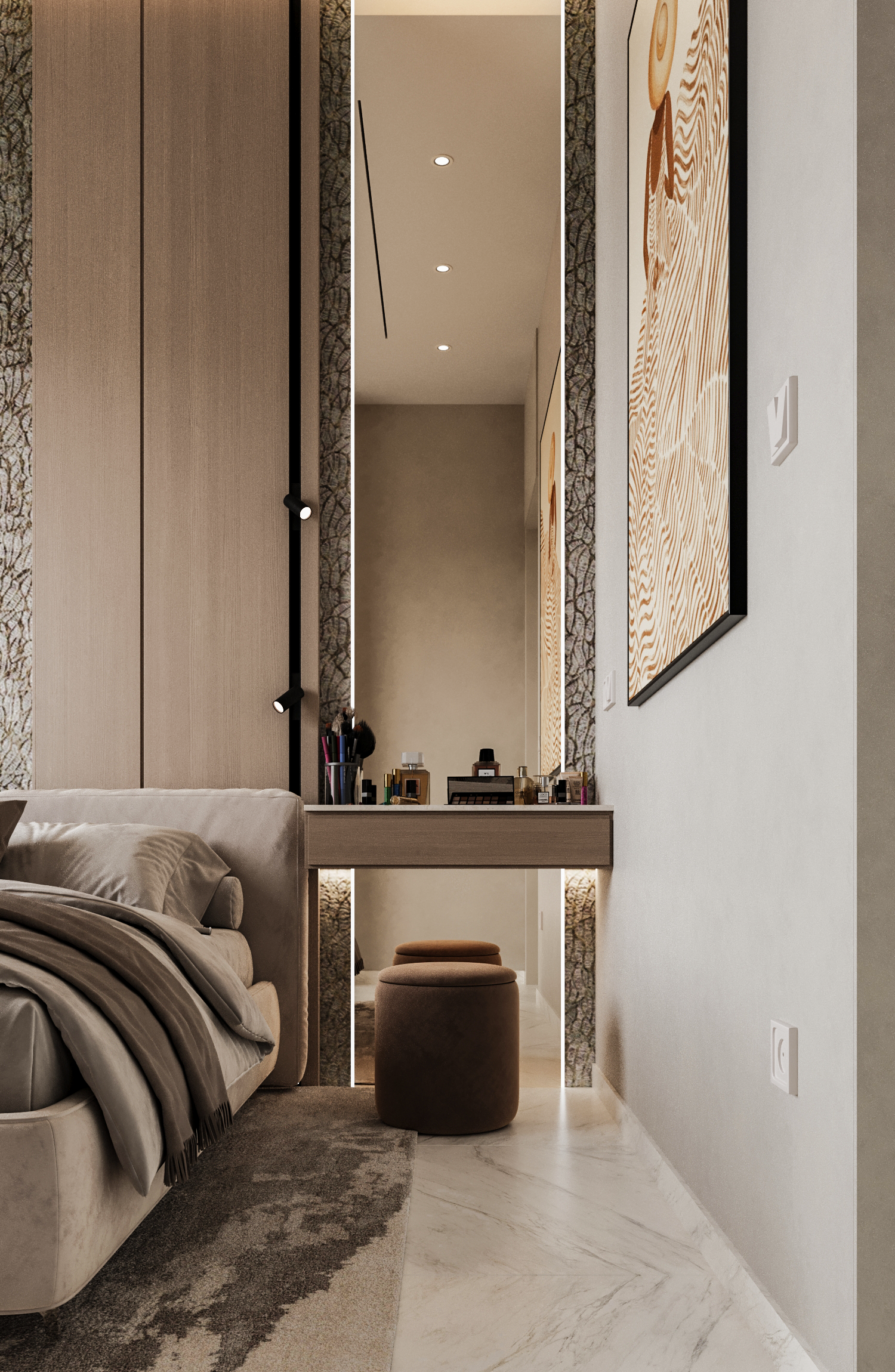 Τα υπνοδωμάτια και τα λουτρά σχεδιάστηκαν με φιλοσοφία boutique hotel, ενισχύοντας τον χαρακτήρα ενός high-end διαμερίσματος πόλης.